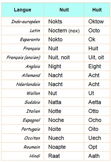 indo-européennes les mots huit et nuit se ressemblent. Explications? En fait, il n'y a
