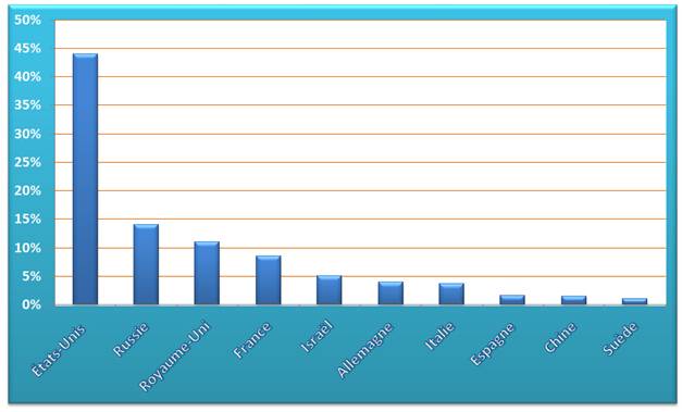 Exportation de matériel militaire. Statistiques sur la période 2006-2011. En moyenne: 73,2