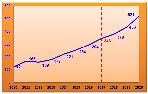 2010 à 2020 (Prévisions de 2017 à 2020)