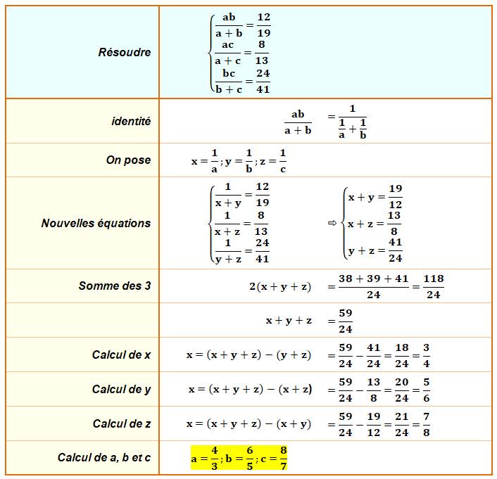 Système d'équations avec fractions Exemple de résolution et astuce pour y arriver. L'idée: un changement de variables en prenant les