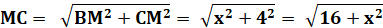 Calcul des longueurs EM et MC Expression de f(x) |