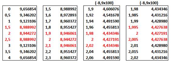 2,01 => f(x) = 8,944289 La valeur x=