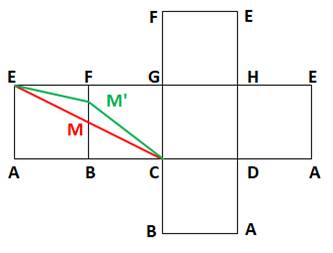 représente le trajet AMC quelconque (vert) et le trajet AMC avec M au milieu