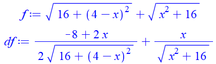 1,99 => f(x) = 8.944289 Pour x =