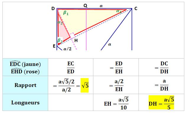 Le tableau indique les égalités des proportions. Notez l'ordre d'écriture des lettres, important