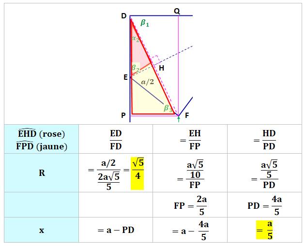 Valeur de l'inconnue On trace PF, QF et DF. x = PA = a – DP. Identification des triangles