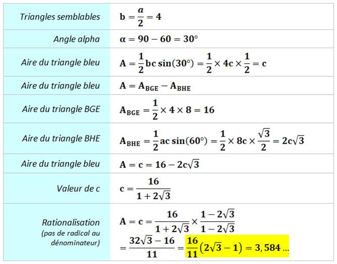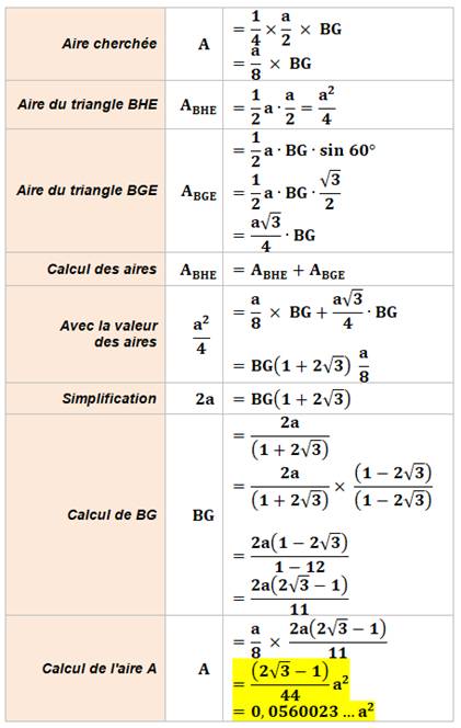 du calcul de l'aire avec le sinus de l'angle pour ces deux derniers
