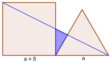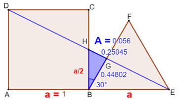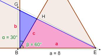 de l'oblique bleue avec le côté du triangle. Plus prometteur: Les trois triangles Aire de BGH = Aire de BGE – Aire de BHE Parmi leurs côtés a est connu (8 cm). Quant à b, on verra que