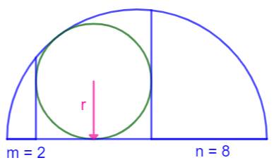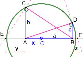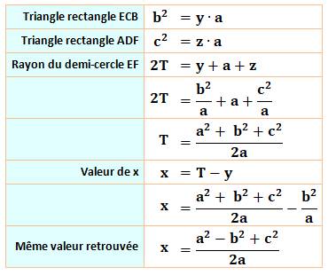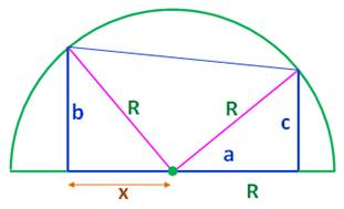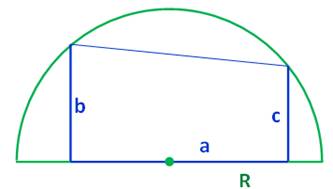 rectangle. Quel est le rayon du demi-cercle ? Application: a = 3; b = 2 et c = 1. Piste (Figure