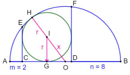 Construction Un demi-cercle de rayon R inconnu. Un cercle vert compris entre deux