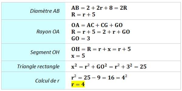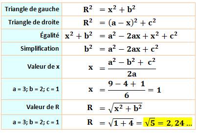 connaitre les trois inconnues r, R et x. On remarque que le triangle OGI est rectangle et