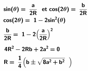 Application numérique Avec a = 6 et b = 14, R = 9 (seule solution positive). |