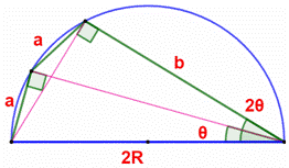 Sommaire de cette page >>> Trois segments dans le demi-cercle |