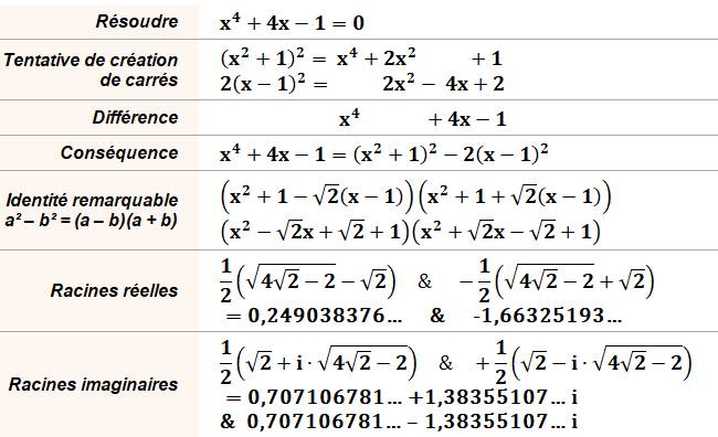 Équation x4 + 4x – 1 = 0 Comment résoudre
