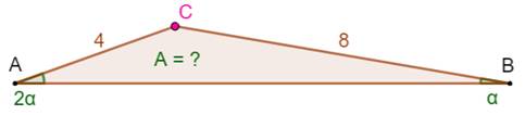 double de son voisin. Deux de ses côtés mesurent 4 et 8 cm. Aire du triangle ? |