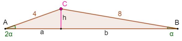tel que AC = 4 et BC = 8 et D est le point d'intersection des demi-droites d'angle