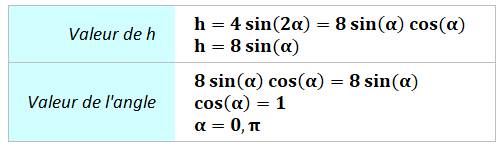 l'angle alpha dépasse 45° et son double dépasse les 90°; de sorte, qu'il faut