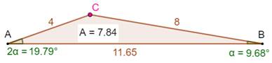 L'angle alpha vaut 75,52…° et son double