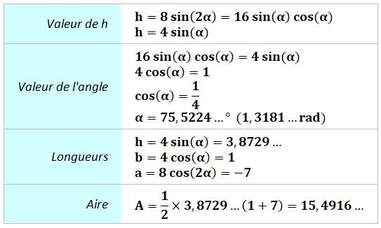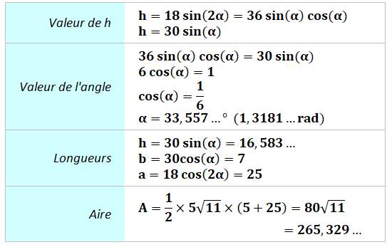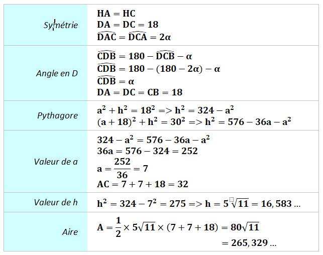 de Pythagore pour trouver les valeurs de a puis de h. |