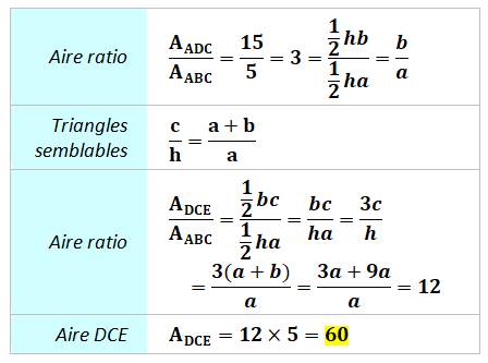 de trois triangles. On connait l'aire de deux d'entre eux. Calculer l'aire du