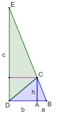 Construction Un triangle rectangle ACB dont l'aire vaut 5. Un triangle rectangle ACD dont l'aire vaut 15. Un triangle rectangle DBE construit comme