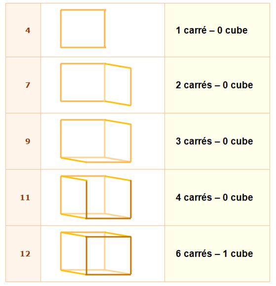 ALLUMETTES et formation de carrés en relief Combien de carrés de
