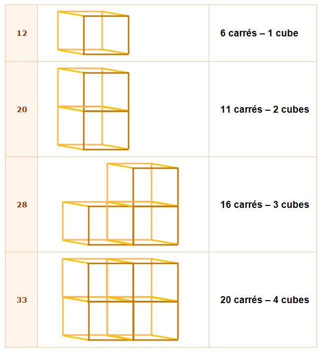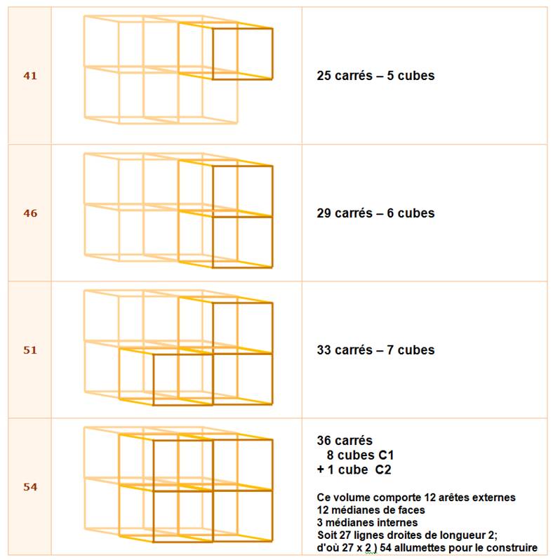 diverses tailles peut-on dessiner en relief (cubes) avec N allumettes? Le tétraèdre