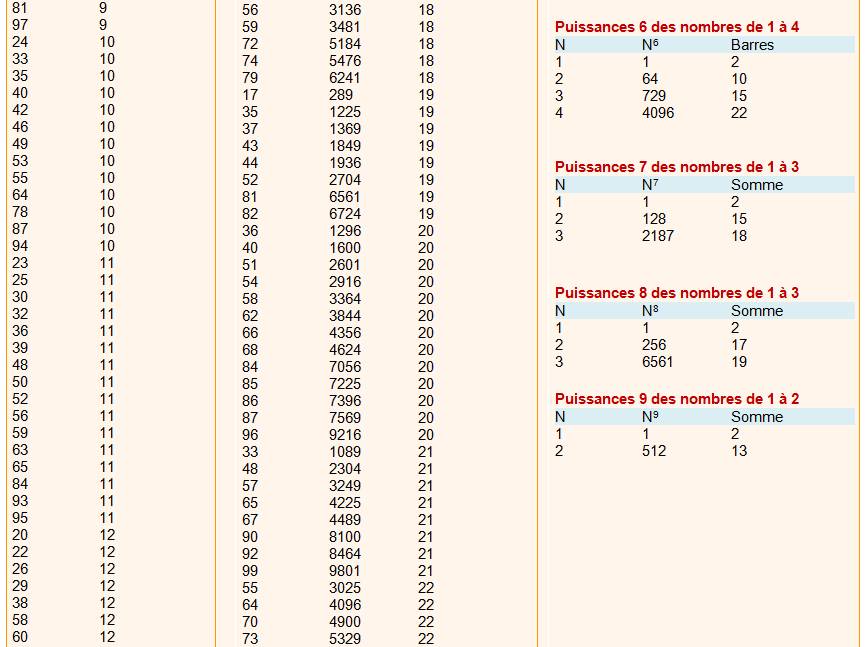 sont: 1, 4, 8, 9, 16, 25, 27, 36, 49, 64 et 81. |