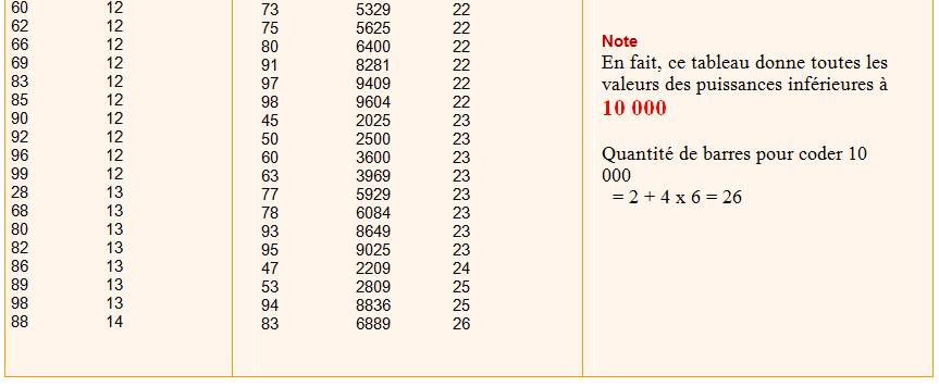 coder les 10 chiffres, il faut 50 barres; moyenne 5 barres par chiffre