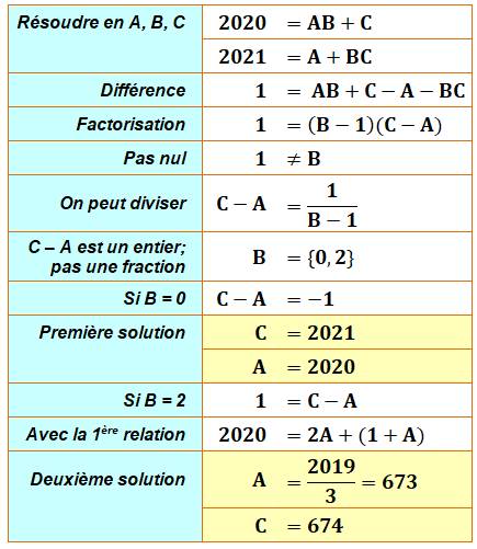 Défi avec 2020 et 2021 Résoudre ce système