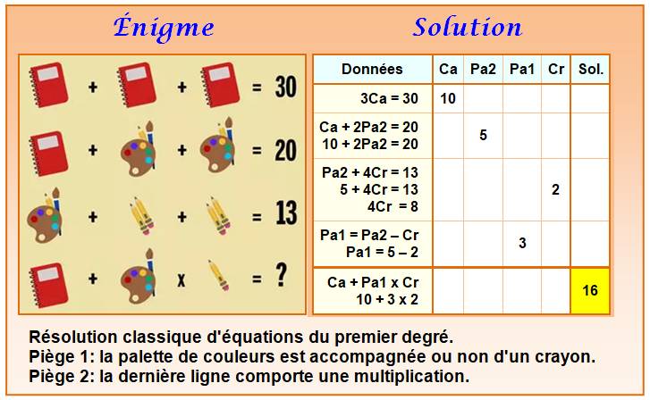 Énigme typique avec ses pièges ! – Solution en un seul tableau