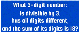 369, 378, 459, 468, 477, 558, 567, 666,