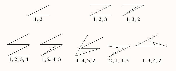 On numérote les timbres du haut vers le bas sur la première figure. On conserve les numéros et on donne la succession des timbres selon les pliages.