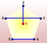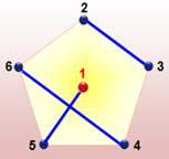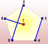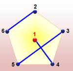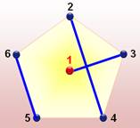 avec le 1 au centre et les cinq autres équipes disposées aux sommets du pentagone.