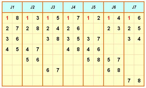 deuxième jour: 1 est avec 3, puis 2 avec 8, etc.