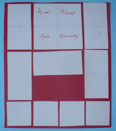 grand carré rouge (dit "âne rouge") jusqu'à la porte de sortie