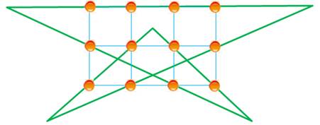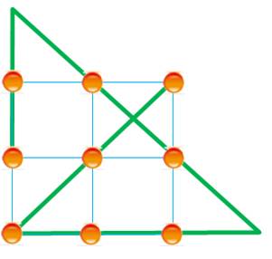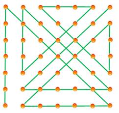 ces neuf points avec seulement quatre segments sans lever le crayon. Notation: (R9/4). |