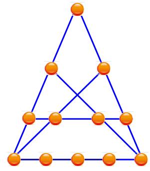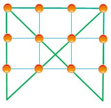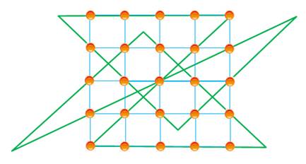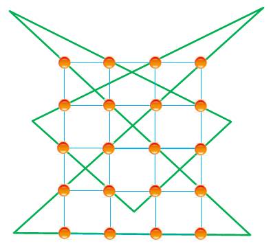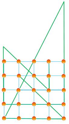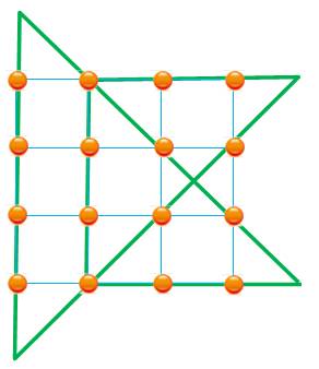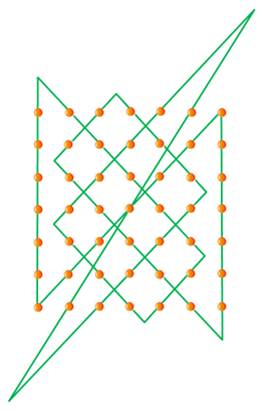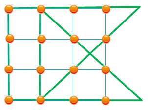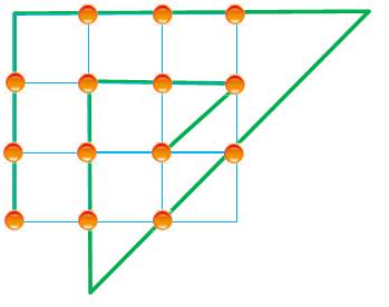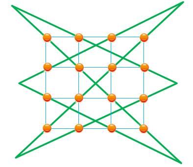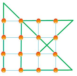 démontre que pour une grille n x n (n > 2), il faut un minimum de 2n – 2 segments. Par exemple, pour une grille de 4 x 4 = 16 points, la ligne brisée comporte un
