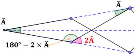 déduit la valeur de l'angle rose: 180 – (180 – 2A) = 2A. |