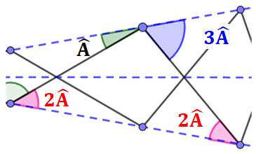 triangle isocèle, les angles à la base valent 3A. L'angle