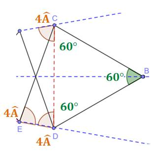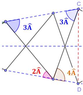 triangle DCE est isocèle. Ses angles à la base valent 4A. Par symétrie,