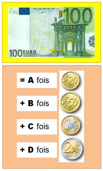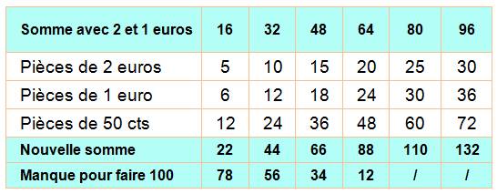 avait que des pièces de 2 euros, il y en aurait: 100 / 2 = 50. C'est la