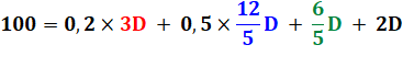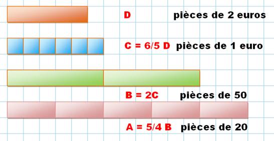 euros. Si D = 5 alors C = 6, B = 12 et A = 15. La somme