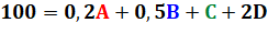 relations entre les quatre valeurs inconnues A, B, C et D |