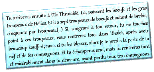 l'île de Thrinacia (Sicile ou Malte?), ne pas toucher au troupeau sacré
