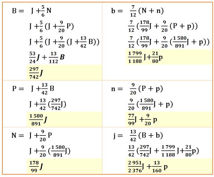 de retrouver la quantité de bœufs à partir de sept conditions formant équations. Cette première partie n'est pas très dure à