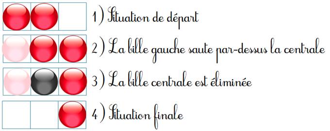 montrent une des possibilités pour éliminer les billes bleues. Il n'est pas