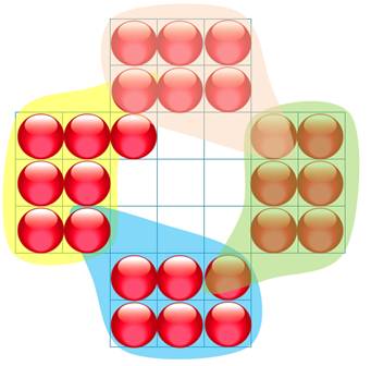 Variante: former une figure (carré, croix …) avec les