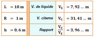 de liquide lorsque la citerne est en position horizontale ? Pour un