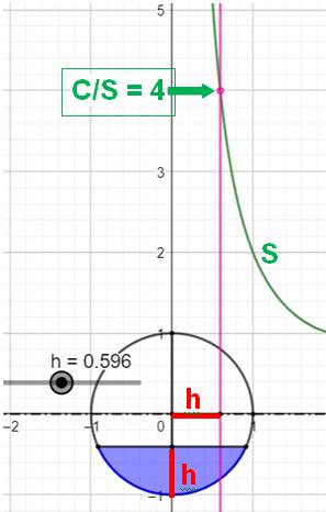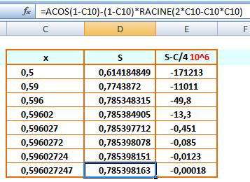 simplement S = C/4. Du fait de la présence de l'arccos cette équation